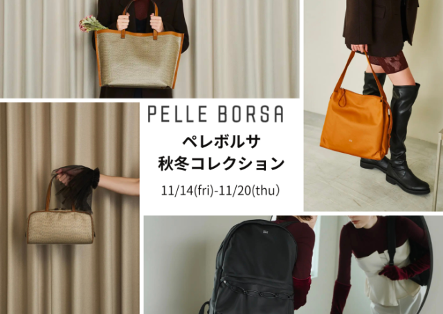 ペレボルサの秋冬コレクションを開催いたします。 ペレボルサは和装小物の製作から始まったメーカーで創業80年の老舗です。 ブランドの価値や品質を一貫するため金具や素材からオリジナルにこだわり、 素材調達、デザイン、生産、検…